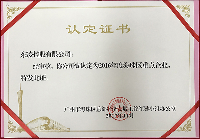 2016年度海珠区重点企业证书